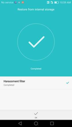 Espere a que se complete el proceso antes de desconectar su Huawei P20. Una vez que recibe un mensaje que le dice que la restauración ha sido exitosa, ¡debería poder ver sus fotos en su nuevo teléfono!