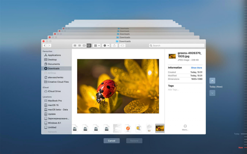 Paso 06: en el máquina del tiempo aplicación, busque las copias de seguridad asociadas de las fotos eliminadas.