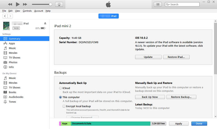 - Dentro de la interfaz, busque y seleccione "Resumen"pestaña relacionada con su dispositivo iPhone. Dentro de esta pestaña, busque y haga clic en "Copia ahora"Opción para iniciar el proceso de copia de seguridad.