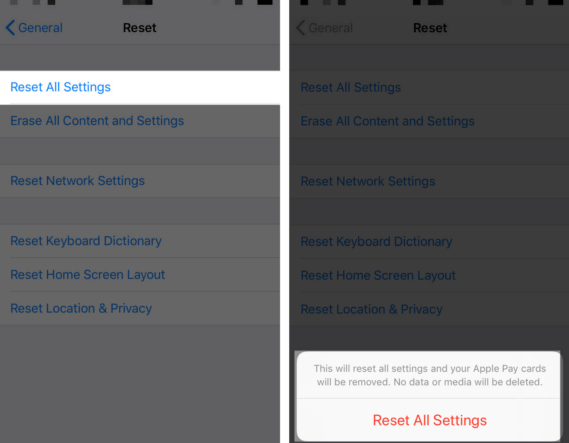 Cuando haya hecho lo que pueda y aún así los mensajes estén en mal estado, puede considerar restablecer todas las configuraciones en el iPhone.