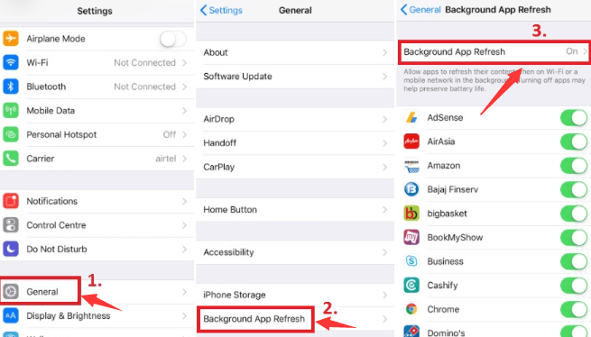 Probablemente sepa que tanto las actualizaciones automáticas de aplicaciones de iOS como las descargas manuales siempre han tenido un impacto en el rendimiento de la batería. Varias de las aplicaciones de su iPhone a menudo se usan con poca frecuencia, pero reciben muchas más actualizaciones y consumen mucha más energía. Entonces, aquí viene otra forma de restablecer la batería del iPhone para mejorar el rendimiento, puede desactivar esta funcionalidad realizando el proceso básico: