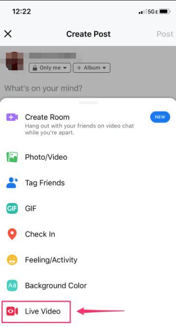 - Iniciar un video en vivo: toque "Crear una publicación". La encontrarás en la parte superior de tu sección de noticias o de tu perfil. Por lo general, parece un cuadro con "¿Qué tienes en mente?" escrito en su interior.