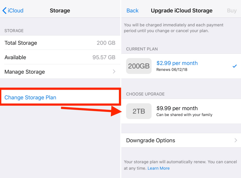 Paso 5: luego elija Cambiar plan de almacenamiento.