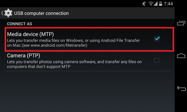 Esto le pide a la computadora que detecte el teléfono inteligente como un dispositivo como fuente de archivos multimedia como fotos, videos y música. Esto debería resolver el problema subyacente, aunque la posibilidad es un poco escasa. Si no funcionó, puede cambiar otro conjunto además de esto.